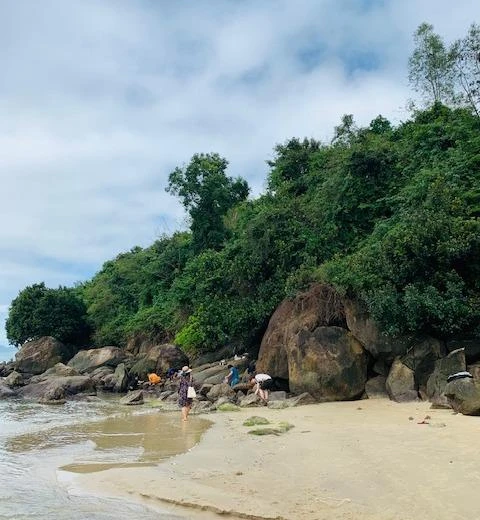 Một ngày đi biển rong chơi, thay vì tắm biển chúng tôi chấu đầu vào rặng đá lô nhô xô ra biển, dưới chân đá bao quanh là những lớp hàu cũng là một sản vật biển đặc biệt.