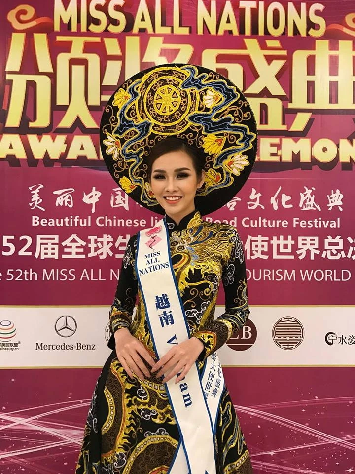 Trong trang phục dân tộc tại cuộc thi ở Trung Quốc.