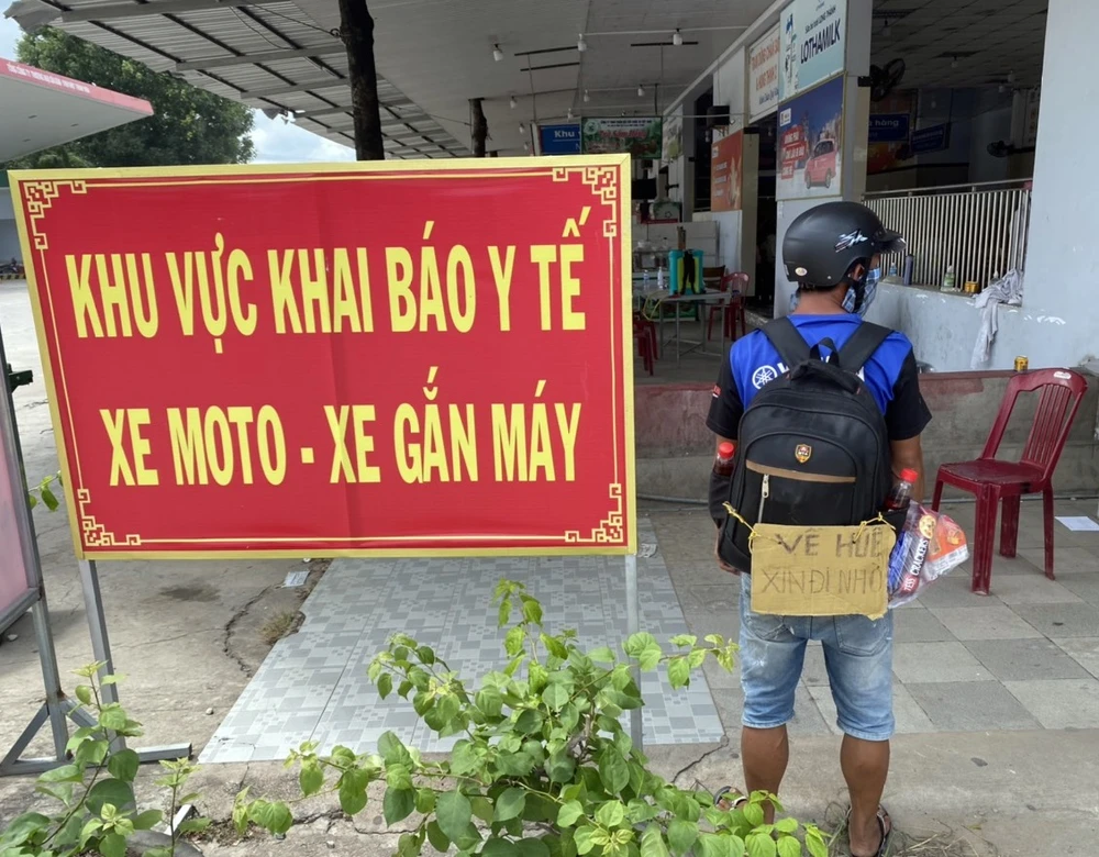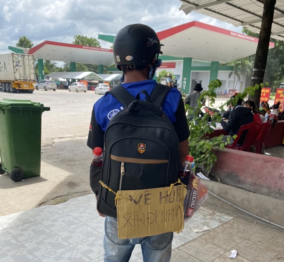 Trưa 27-7, sau khi 8 ngày ròng rã đi bộ từ Trà Vinh lên TP.HCM và từ TP.HCM đi bộ theo Quốc lộ 1A với dự định về Thừa Thiên - Huế, anh Hồ Tám (33 tuổi) vượt qua gần 250 km đến Chốt kiểm soát COVID-19 tỉnh Bình Thuận, giáp ranh Đồng Nai khai báo y tế.