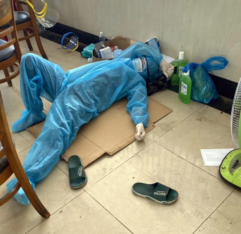 Nhân viên y tế ngủ dưới sàn nhường chỗ cho những hoàn cảnh đáng thương