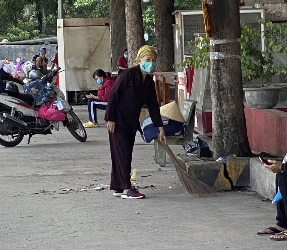 Bà Tứ đi từ hôm 26-7, nhưng may mắn hơn anh Tám là bà liên tục quá giang được xe máy từng đoạn và trưa 27-7 đã đến được địa phận Bình Thuận.