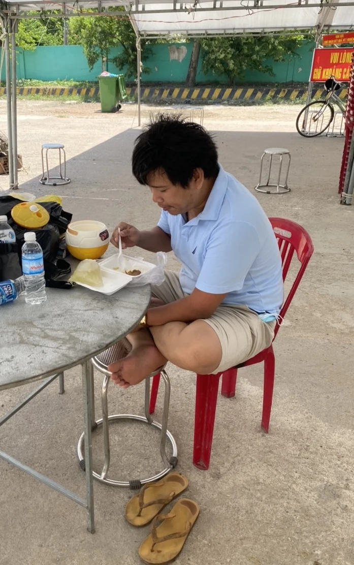 Trước mắt, anh Tám được ở lại chốt, ăn uống cùng anh em để chờ vé tàu chuyến tiếp theo và trước khi lên tàu anh sẽ được test nhanh COVID-19. Xúc động trước hoàn cảnh của anh Tám, trưa 27-7, các nhân viên y tế ở chốt sẵn sàng nằm đất nhường luôn ghế xếp anh nghỉ ngơi cho lại sức.