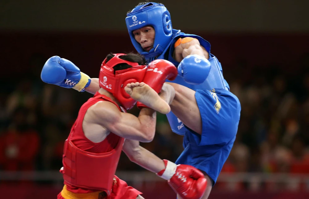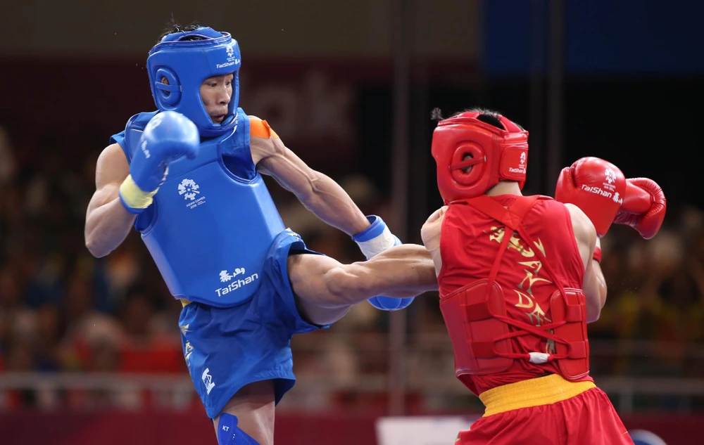 Võ sĩ tán thủ Bùi Trường Giang trong trận chung kết thất bại trước tay đấm Trung Quốc. ẢNH: ANH ĐỒNG