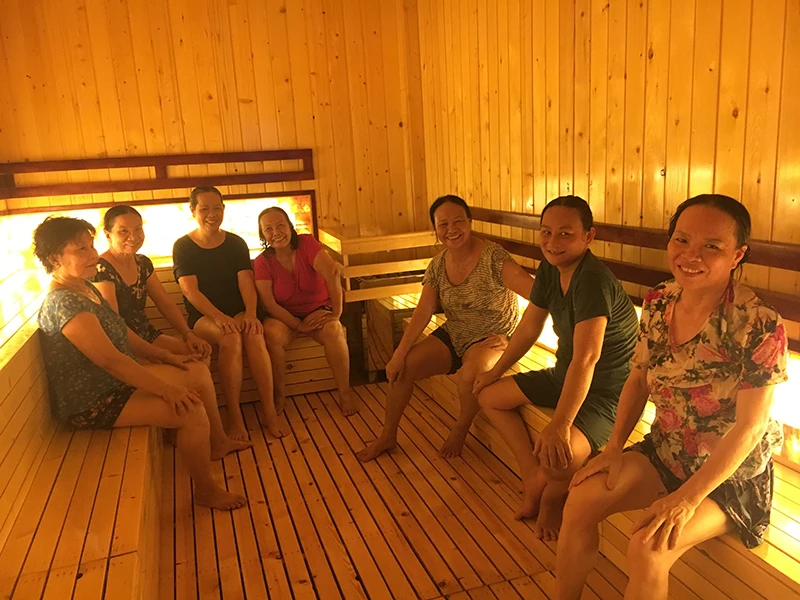 Người tham gia liệu trình thải độc đang xông hơi. Ảnh: HL