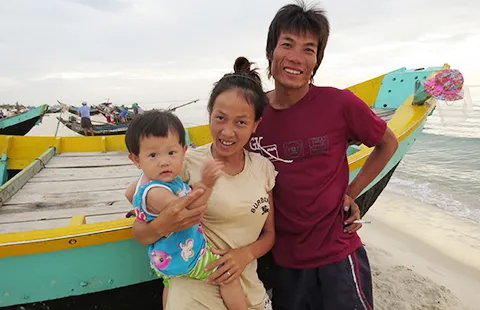 Ảnh 3: Vợ và con sau đêm ngủ biển đợi chồng trở về sau chuyến đi biển. Ảnh: MINH QUÊ
