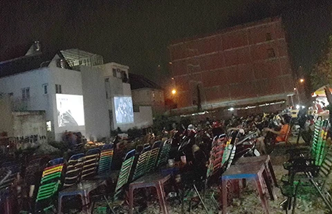 Đi xuôi hướng đường Phạm Văn Đồng về TP mới thuộc xã Dĩ An, Bình Dương hơn 15 phút xe máy, không gian thoáng đãng của một bãi đất trống lớn chứa hơn chục màn hình chiếu với máy móc, thiết bị, bàn ghế phục vụ phim miễn phí suốt đêm, gió thiên nhiên mát lộng, chỉ lấy tiền thức uống như các quán cóc khác (ảnh).