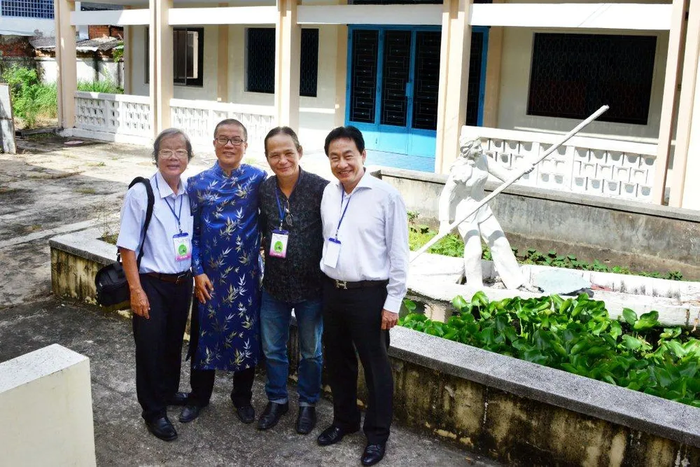 Tác giả mặc áo dài nam cùng các đại biểu dự hội thảo “Du lịch trách nhiệm - Mong muốn và hiện thực” ở Đồng Tháp. Ảnh: NVCC
