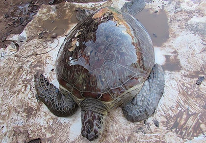 Rùa biển quý hiếm 40 kg mắc cạn ven biển Sóc Trăng.