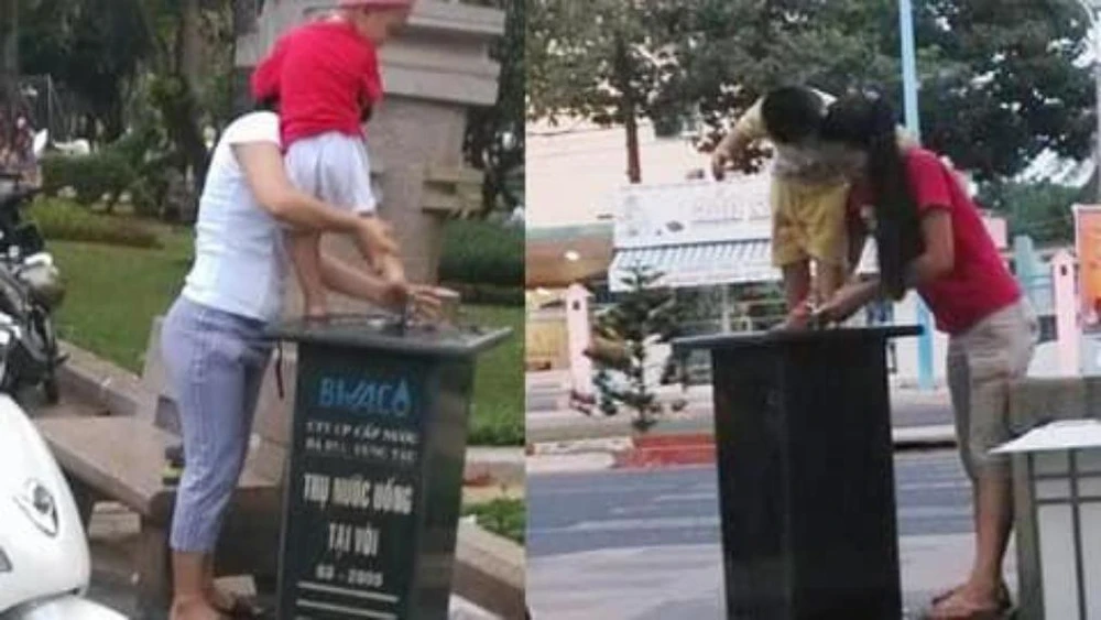 Ngày 11-4, trên một tài khoản Facebook đăng tải hai hình ảnh bà mẹ trẻ bế con nhỏ lên rửa chân tại vòi uống nước của trụ uống nước công cộng. Hình ảnh phản cảm, xấu xí trên được rất nhiều người chia sẻ, bình luận theo hướng phê bình hành vi thiếu ý thức của các bà mẹ.