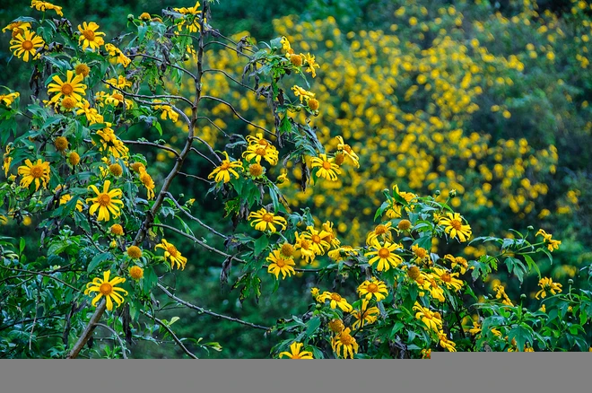 Những ngày này, dã quỳ vàng nở rực rỡ bên đường Quốc lộ 6, đi qua đồi chè hay bên những lối mòn vào các bản làng trên cao nguyên Mộc Châu, tạo nên khung cảnh hữu tình cho một vùng cao nguyên rộng lớn.