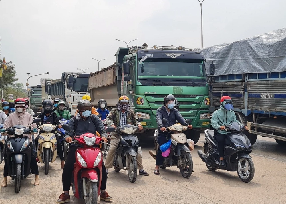 Đặc biệt vào buổi sáng và chiều tan giờ làm, nhiều công nhân đi xe máy hướng từ huyện Long Thành về TP Biên Hòa khiến khu vực này lộn xộn và tình hình giao thông rất phức tạp.