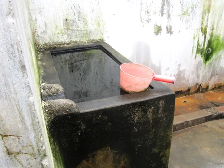 Bể nước dội nhà vệ sinh, nơi các em HS nhúng đầu vào. Ảnh: Internet