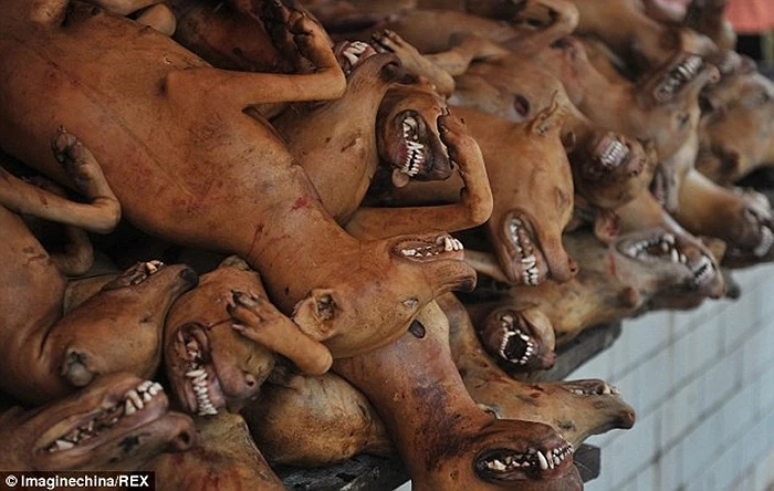 Thịt chó bày bán trong lễ hội thịt chó ở Ngọc Lâm, Trung Quốc