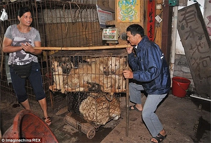 Những chú chó còn sống nằm chờ bị đem ra làm thịt