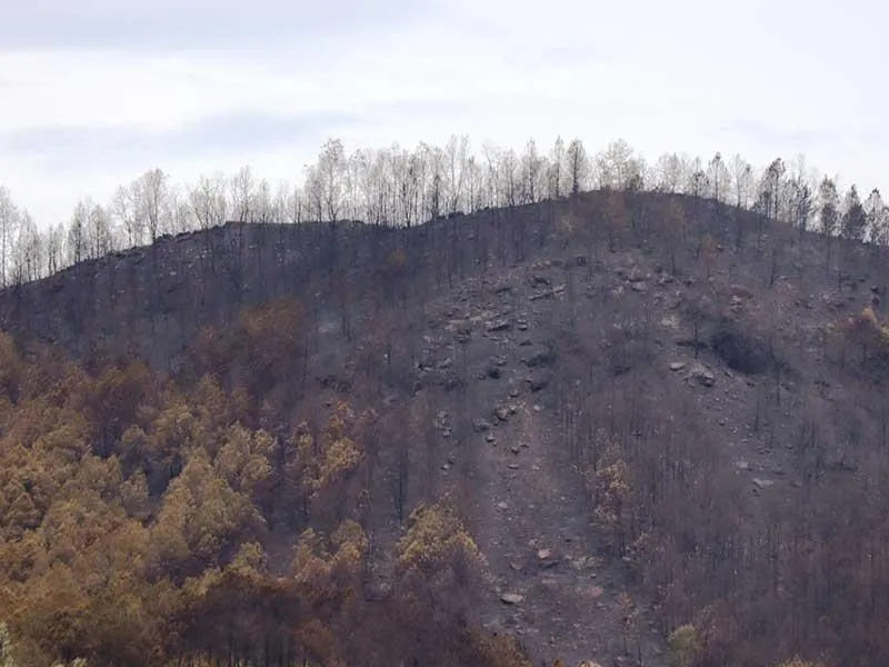 Một vạt rừng ở Nghệ An bị cháy rụi sau khi lửa đi qua. Ảnh: Đ.LAM