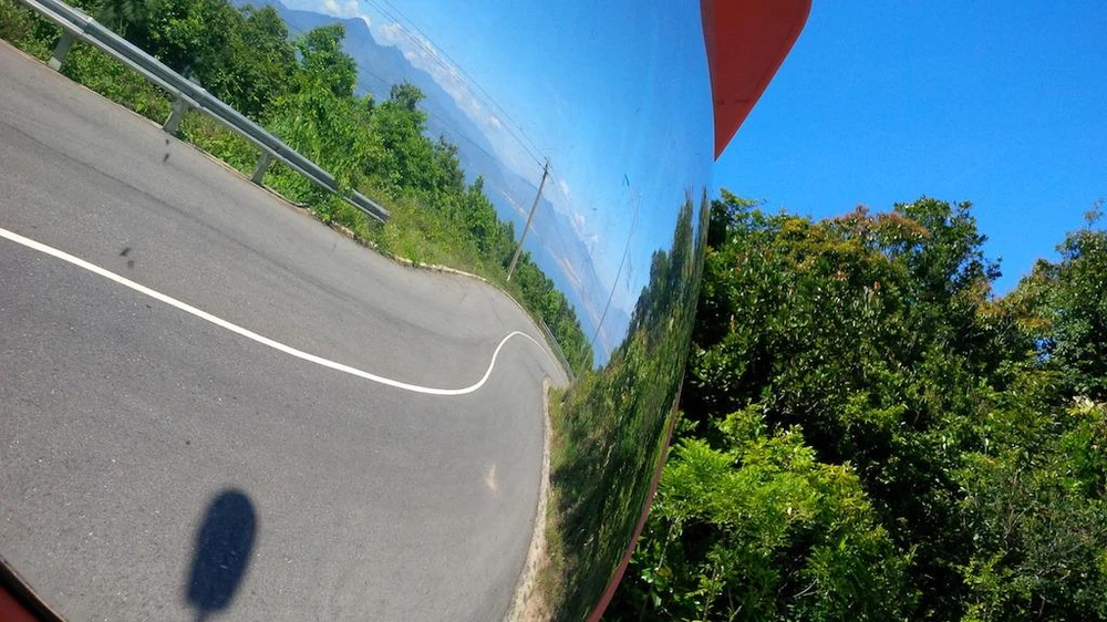 Một góc cua dốc được bố trí gương cầu lồi trên bán đảo Sơn Trà. Ảnh: LÊ PHI