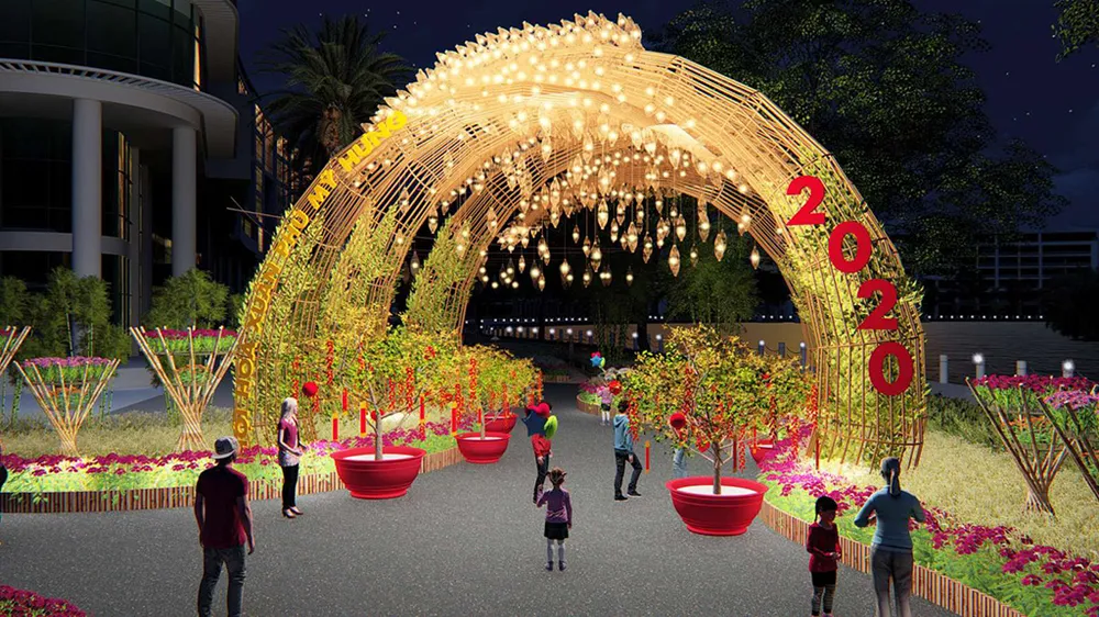 Phác hoạ cổng chính của Hội hoa xuân Phú Mỹ Hưng tết Canh Tý 2020