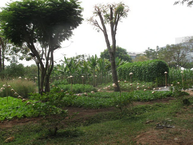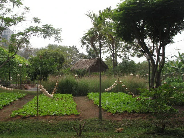 Điểm đặc biệt của hội chợ lần này là tất cả những gì thuộc về đồng quê như nhà tranh vách đất, ruộng lúa, luống dưa, vườn bầu, vườn cải… đều được tạo lập như thật để trẻ con thành phố cảm nhận đúng đời sống, quang cảnh đồng quê.