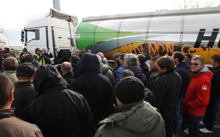Khoảng 150 nhà sản xuất rượu vang ở vùng Aude and Pyénées-Orientales của Pháp đồng loạt hò reo trước cảnh tượng hai xe bồn rượu vang Tây Ban Nha bị rút cạn và trút thẳng xuống đường. Sự việc xảy ra tại Le Boulou, cách biên giới Tây Ban Nha khoảng 16 km.