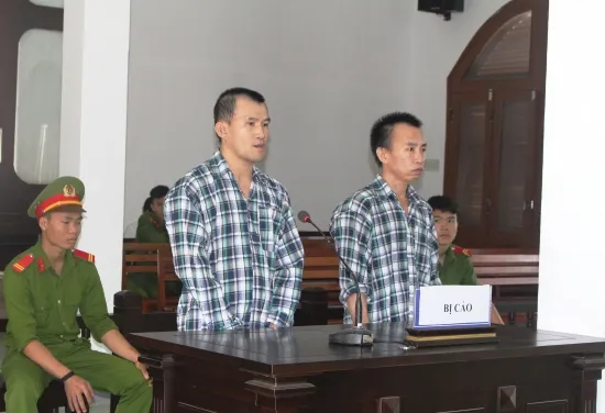 Hai bị cáo Sinh, Hiển (từ trái sang) tại phiên xử sơ thẩm. Ảnh: Trang web tỉnh Phú Yên