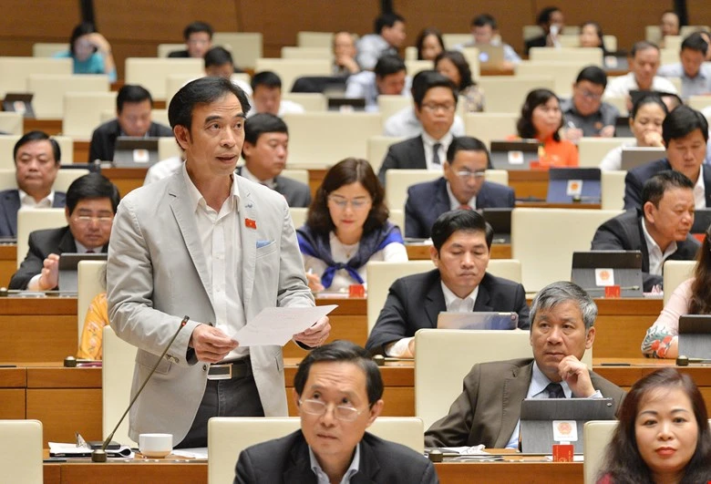 Ông Nguyễn Quang Tuấn phát biểu góp ý cho báo cáo công tác nhiệm kỳ 2016- 2021 của Chủ tịch nước, Chính phủ ngày 29-3-2021. Ảnh: quochoi.vn