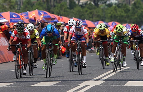 Thành Tâm rút Lê Văn Duẩn và nhiều cua rơ bám theo thắng ở chặng 17 khẳng định chiếc áo xanh không ai có thể xé được của mình. Ảnh: MQ