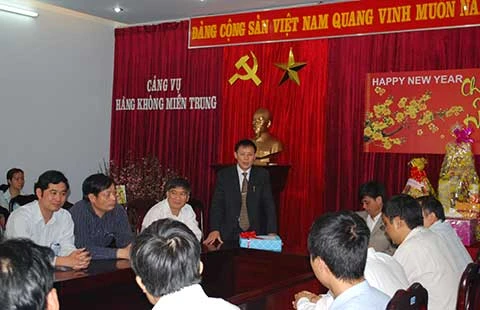 Ông Lê Văn Nguyện, Giám đốc Cảng vụ Hàng không miền Trung (người đứng), trong một cuộc họp đầu năm của cơ quan. Ảnh: HH