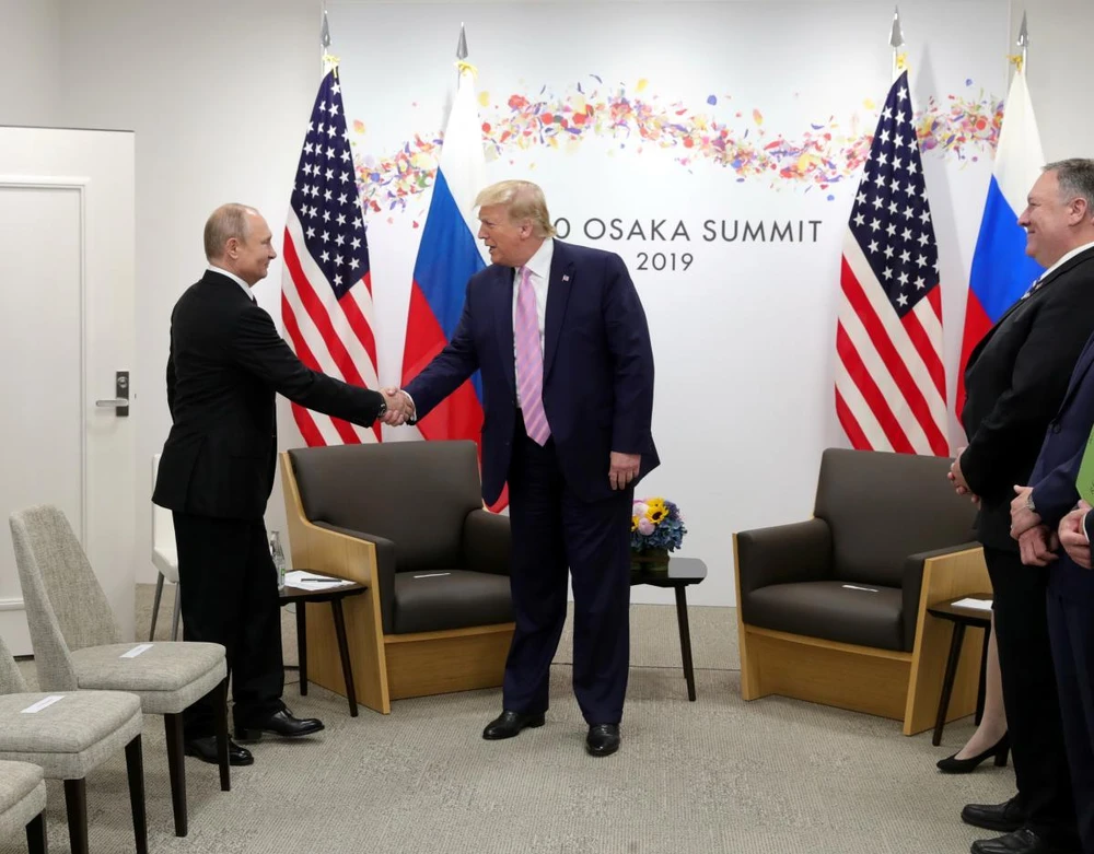 Tổng thống Nga Vladimir Putin (trái) và người đồng cấp Mỹ Donald Trump gặp nhau bên lề Hội nghị thượng đỉnh G20 tại Nhật Bản cuối tháng 6. Ảnh: REUTERS