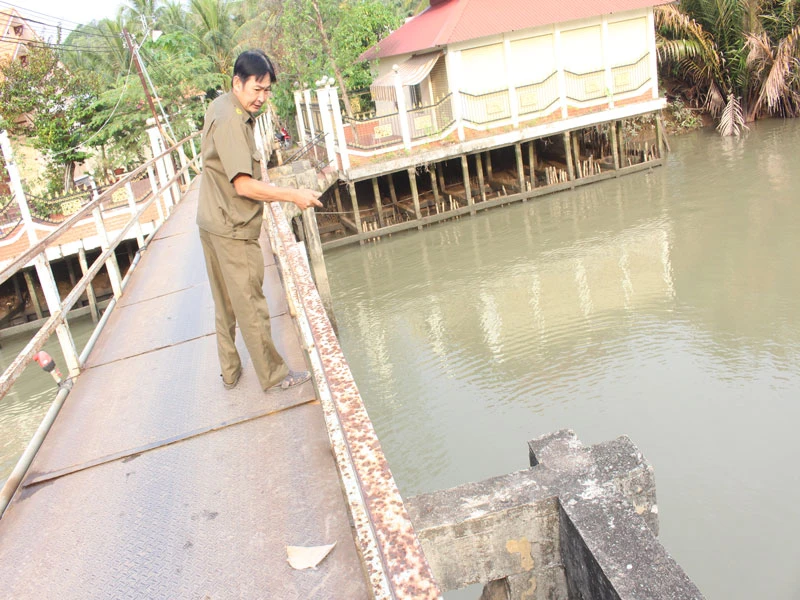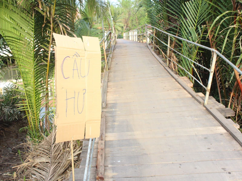 Sau khi xảy ra sự cố sà lan va lệch cầu, ngành chức năng đã đặt biển báo cầu hư và tìm phương án khắc phục