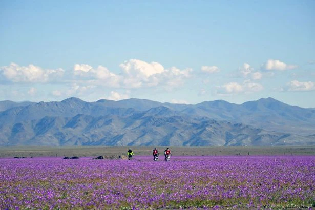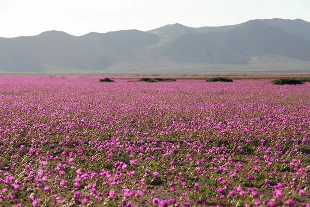 Lượng mưa kỷ lục đã làm cho loài thực vật Malva (hay còn gọi là Mallow) sống trên thềm cát của sa mạc Atacama nở hoa, tạo nên cảnh quan ngoạn mục nhất trong hơn 18 năm qua.