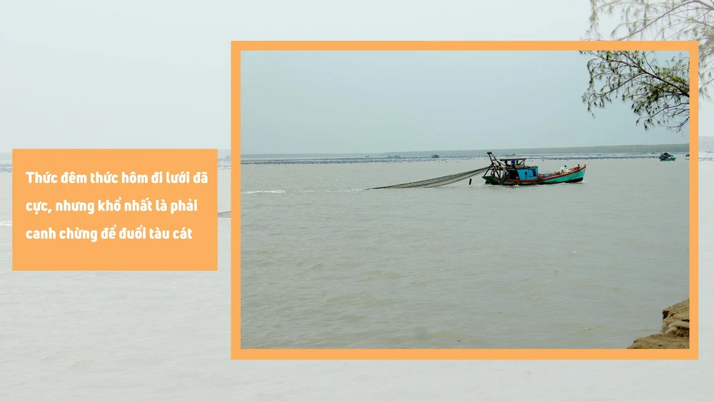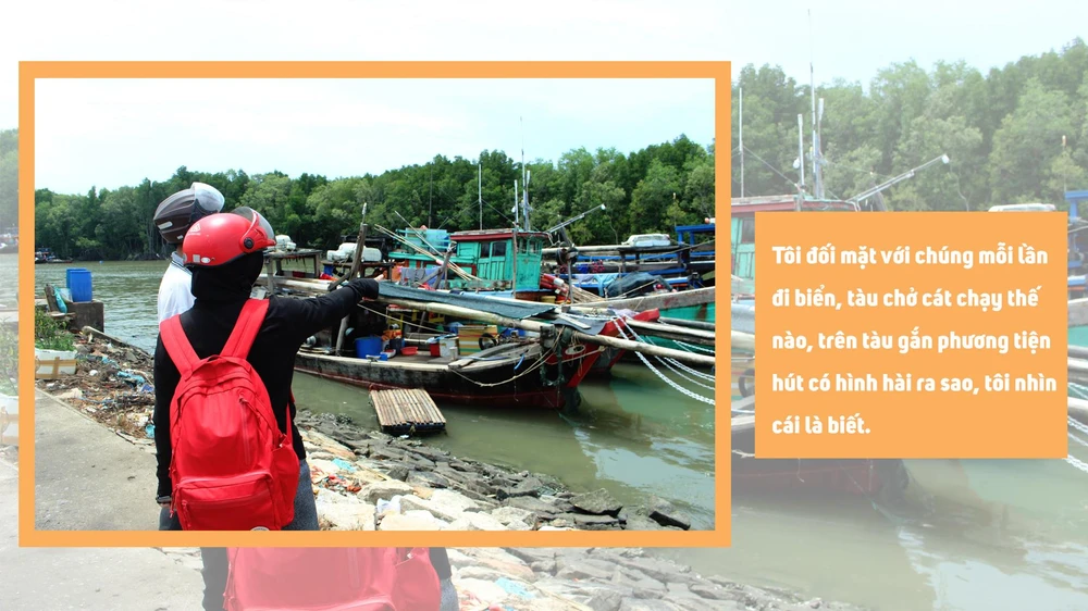 Nhiều ngư dân địa phương đưa mắt ra phía biển, chỉ cho chúng tôi những khu vực mà các tàu cát lậu thường neo đậu. Thấy đằng xa có tàu công suất lớn đi ngang, các ngư dân khẳng định chắc nịch đó là tàu cát. Lý do, họ đã quá quen với những con tàu này bởi hầu như mỗi lần ra biển là mỗi lần đụng mặt.