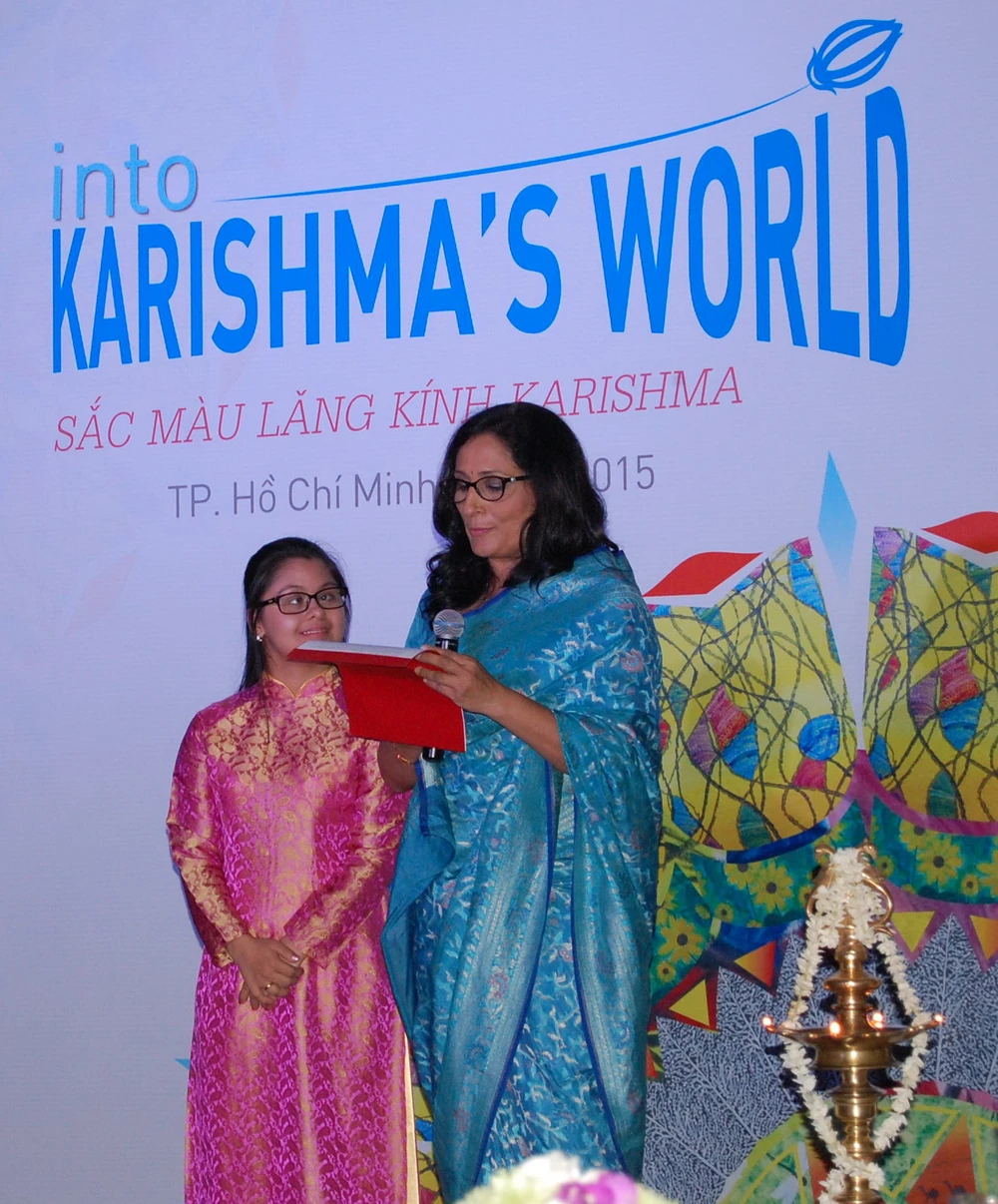 Có mặt tại buổi triễn lãm tranh, NSND Kim Cương xúc động phát biểu: “Từ một em bé nhút nhát, đi đâu cũng núp sau lưng mẹ thẹn thùng nhưng nay thì Karishma đã rất tự tin đi theo chúng tôi trong các chương trình từ thiện. Karishma không nói được nhiều nhưng từ cái nhìn, cái nắm tay của em, sự chia sẻ với những người cùng cảnh ngộ, Karishma thực sự đã trưởng thành. Một cô gái dễ thương với những bức tranh ngày càng đẹp hơn, có hồn hơn”.
