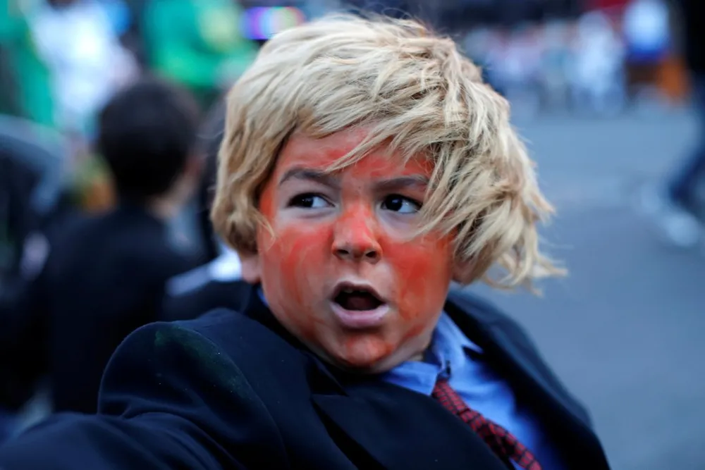 Một cậu bé hóa trang thành ứng viên tổng thống Mỹ Donald Trump. Halloween năm nay của người Mỹ đến cùng với kỳ bầu cử tổng thống. Ảnh: Reuters