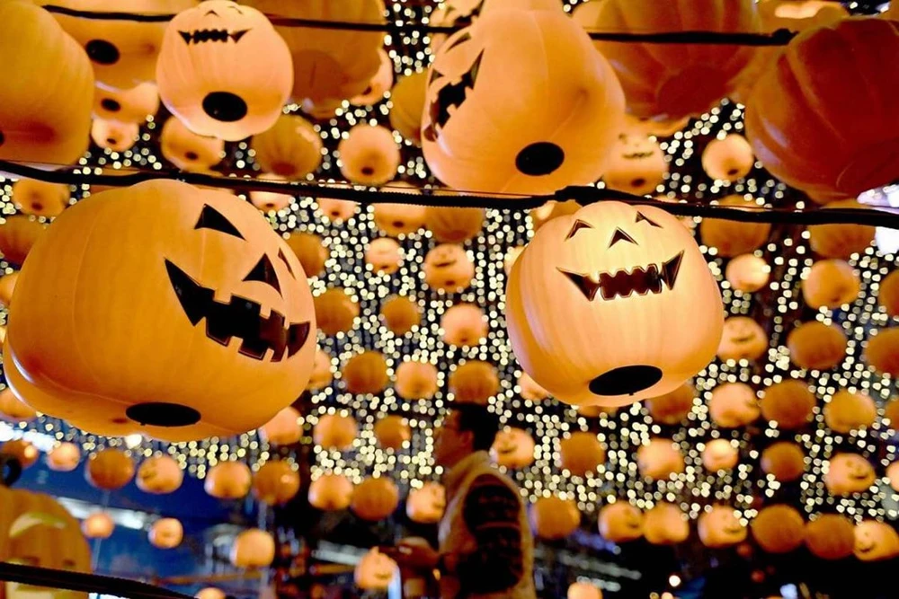Halloween diễn ra vào ngày 31-10 hằng năm, trước ngày Lễ Các thánh của người Cơ Đốc giáo. Ngày lễ vốn để tưởng nhớ những người đã chết của các tín đồ Cơ Đốc giáo ở phương Tây nay đã trở thành lễ hội của người dân trên khắp thế giới. Trong ảnh là một trung tâm thương mại ở TP Thẩm Dương (tỉnh Liêu Ninh, Trung Quốc) được trang trí bằng bí ngô Halloween. Ảnh: AFP