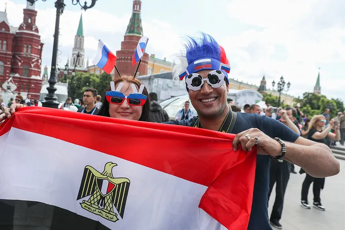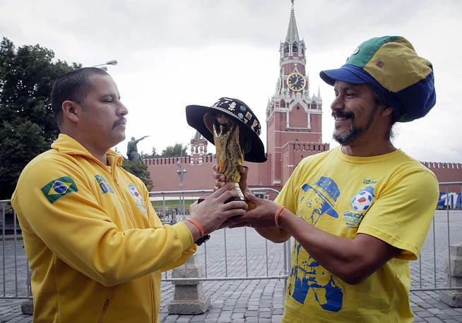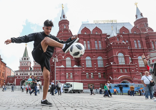 Một fan đến từ Trung Á pha trò ngay tại Quảng trường Đỏ.