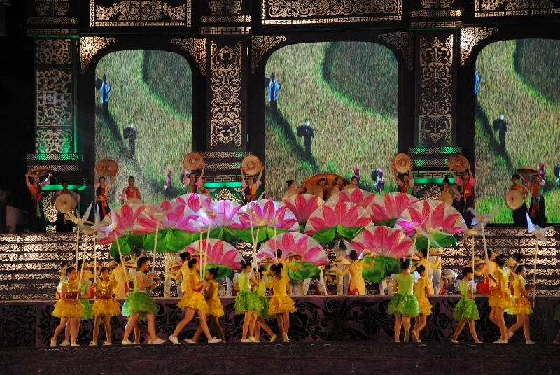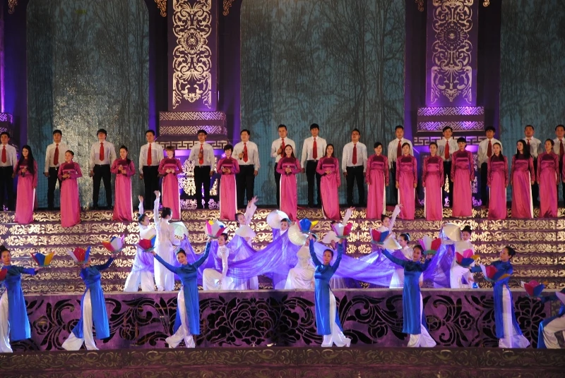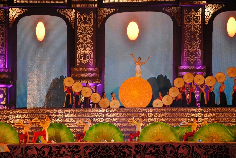 Tiếp đó là Bài ca thần chim lạc, múa cung đình Huế, dân ca quan họ Bắc Ninh “Ngày hội giao duyên”, đờn ca tài tử nam bộ “Khúc biến tấu vọng cổ”, múa “Nam phương mẫu tế”. Là lời mời gọi du khách đến Việt Nam, về với Huế để cảm nhận một vẻ đẹp tiềm ẩn của xứ Huế mộng mơ, một vùng đất với bao điều kì thú, những cảnh quan thiên nhiên hùng vĩ và thơ mộng, những di sản văn hóa đặc sắc và tình người sâu nặng, nghĩa ân. Sau đó là màn trình diễn của các đoàn nghệ thuật đến từ Nhật Bản, Trung Quốc, Hàn Quốc, Úc, Nga…