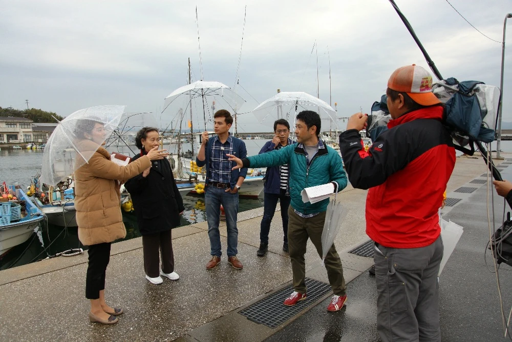 Nhóm sản xuất đang thực hiện một cảnh quay.