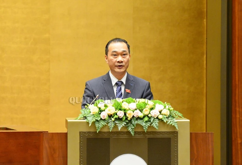 Chủ nhiệm UB Kinh tế của Quốc hội Vũ Hồng Thanh trình bày báo cáo thẩm tra.