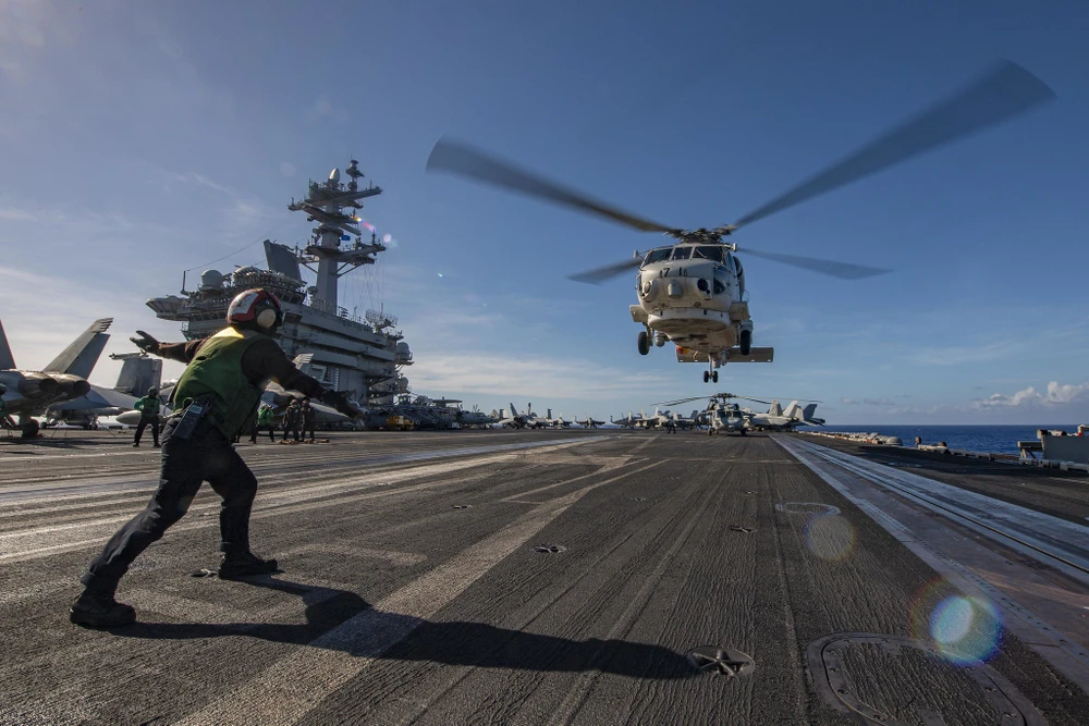 MSDF MH-60 Sea Hawk cất cánh tàu sân bay USS Theodore Roosevelt. Ảnh: INDOPACOM