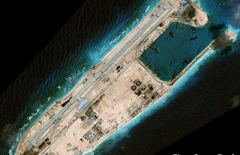 Sách trắng xác định trong 18 tháng qua, Trung Quốc đã bồi đắp thêm 800 ha tại bảy đá ngầm ở biển Đông và tiến hành chính sách hiếu chiến đối với các nước láng giềng qua động thái xây dựng căn cứ quân sự trên đá Chữ Thập.