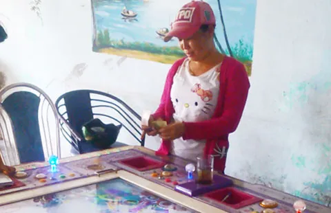 Người này đi là có người khác lấp vào chỗ trống ngay. Xen giữa tiếng lạch cạch của nút bấm là tiếng í ới gọi nhân viên tiếp thêm “đạn” và cả tiếng chửi thề của những người bắn hụt cá. Càng thua họ càng cay cú muốn gỡ gạc và nhiều người chỉ chịu dừng khi đã sạch túi. Để giữ khách, bà chủ ở đây còn sẵn sàng cho những khách quen “ký sổ”. Hiếm hoi lắm chúng tôi mới gặp được người bắn giỏi, tăng điểm và được thanh toán tiền mặt theo số điểm tương đương khi ngừng chơi.