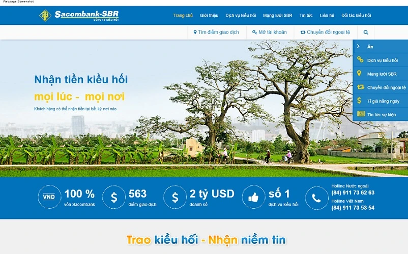 Website Sacombank - SBR mới tại địa chỉ http://www.sacombank-sbr.com.vn (ảnh) có giao diện thân thiện, tích hợp trên nhiều trình duyệt của máy tính bảng, điện thoại thông minh, máy tính xách tay và nhiều thiết bị công nghệ khác. Nội dung được cải tiến ngắn gọn, trực quan, thu hút giúp khách hàng dễ dàng tương tác mọi lúc mọi nơi. Website mới của Sacombank - SBR bổ sung nhiều công cụ hữu ích như: chuyển đổi tỉ giá ngoại tệ trực tuyến; thông tin mạng lưới giao dịch, hỗ trợ khách hàng tìm kiếm điểm giao dịch chi trả kiều hối gần nhất; cập nhật tin tức thường xuyên về thị trường và dịch vụ kiều hối cũng như các quốc gia nơi mà Sacombank - SBR đang cung cấp dịch vụ; hỗ trợ hỏi đáp trực tuyến, giải đáp những thắc mắc của khách hàng hay đối tác kiều hối nhanh chóng qua công cụ hỗ trợ livechat. Website Sacombank - SBR sẽ là một “bách khoa toàn thư” trong lĩnh vực kiều hối và là cầu nối thân thiện giữa Sacombank-SBR, khách hàng và đối tác trên toàn thế giới.