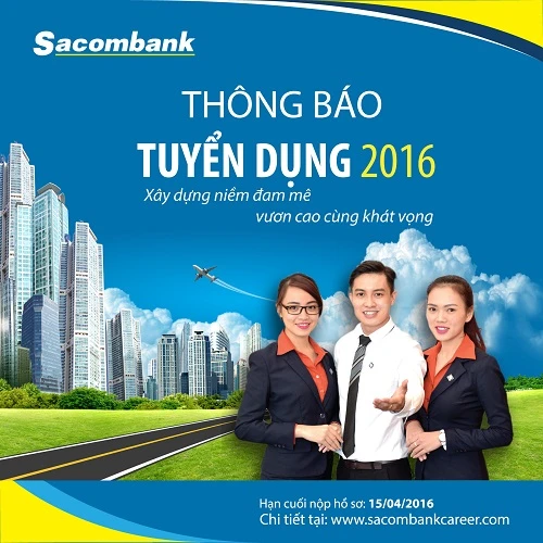 Ngân hàng TMCP Sài Gòn Thương Tín (Sacombank) đang tuyển dụng 800 nhân sự mới làm việc trên toàn quốc, với các chức danh: chuyên viên khách hàng cá nhân (600 người), doanh nghiệp (50); chuyên viên tư vấn (100) và nhân viên bảo vệ (50). Thời gian tiếp nhận hồ sơ từ ngày 14-3 đến ngày 15-4.