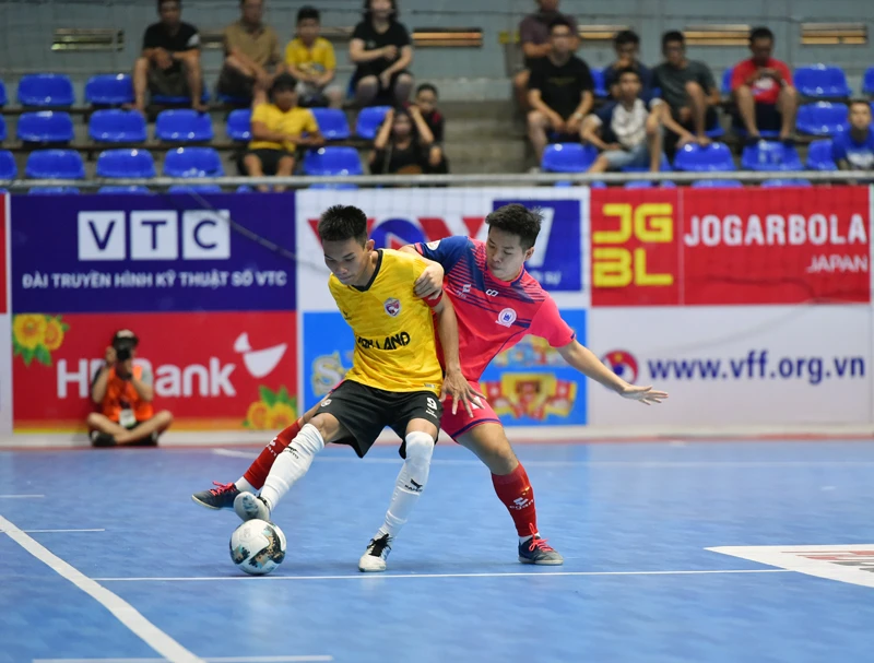 Thái Sơn Nam (xanh) thắng Zetbit Sài Gòn (hồng) ở trận đinh của vòng 7. Ảnh: VOV