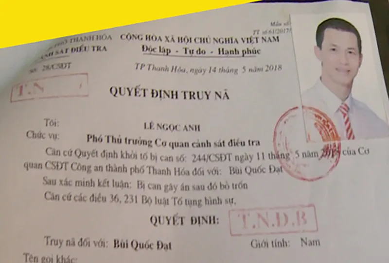 Công an tỉnh Thnanh Hóa thông tin thêm, bất kỳ người nào cũng có quyền bắt và giải ngay người bị truy nã đến cơ quan công an nơi gần nhất. Hoặc ai biết Bùi Quốc Đạt ở đâu, báo về cho Công an TP Thanh Hóa hoặc cơ quan công an nơi gần nhất.