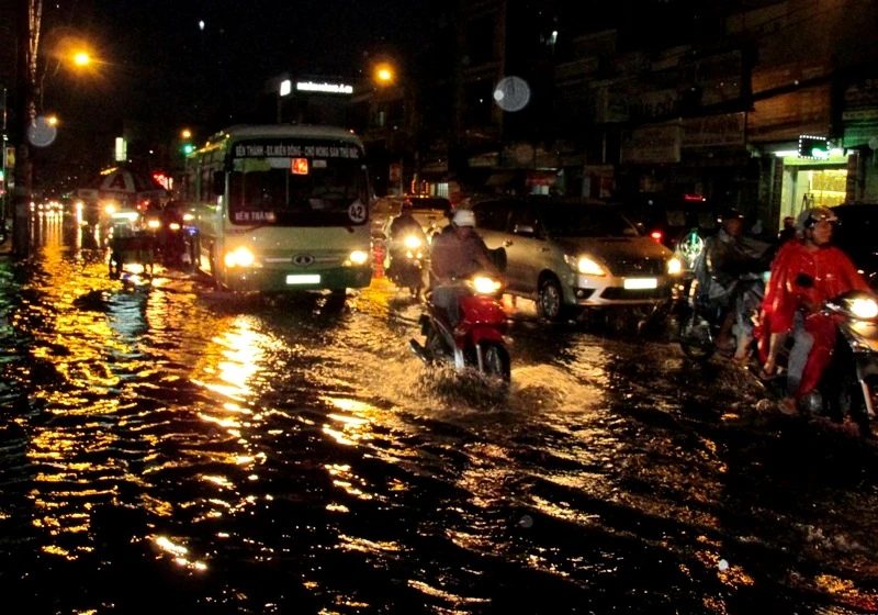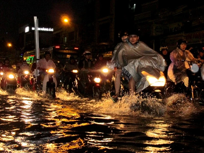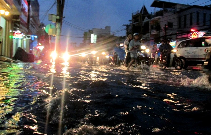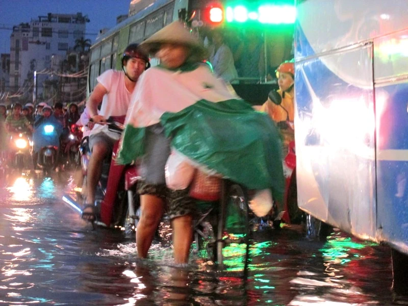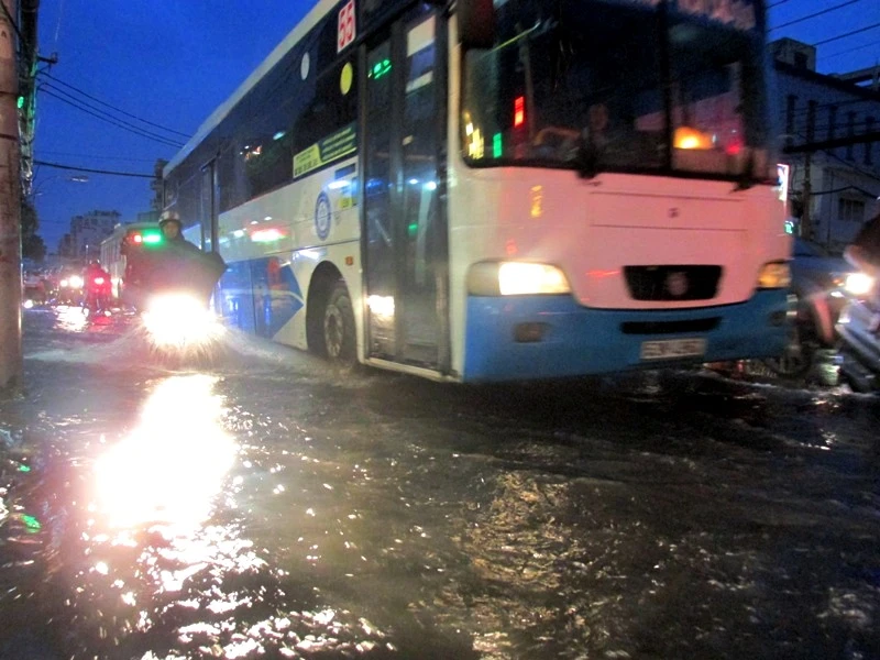 Cơn mưa lớn bắt đầu từ 17 giờ đã khiến nhiều tuyến đường ở quận Bình Thạnh và quận 2 ngập sâu đến nửa bánh xe máy. Nhiều xe bị chết máy, phải dắt bộ. Riêng khu vực Ngã tư Bạch Đằng giao Đinh Bộ Lĩnh (quận Bình Thạnh), nước đã ngập sâu từ 40-50 cm. Đến gần 19 giờ, nước mới bắt đầu rút chậm.