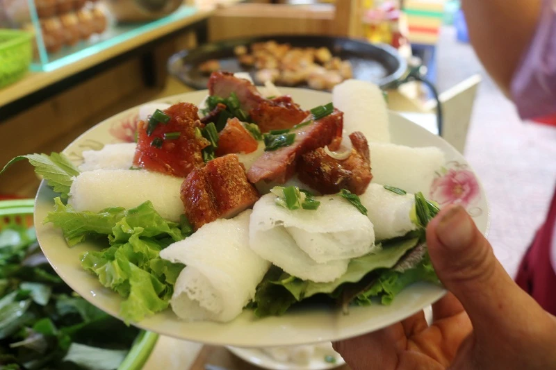 Dĩa bánh hỏi thịt heo quay quá ư ngon miệng.