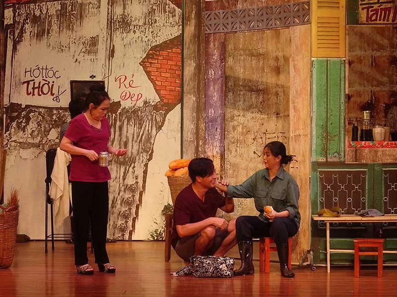 Một không gian Sài Gòn đặc trưng nhiều gợi nhớ trong vở Sài Gòn có một ngã tư. Ảnh: HÒA BÌNH