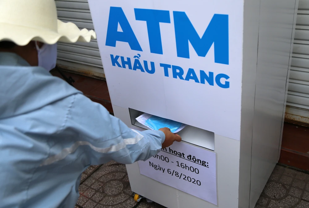 Người sáng chế ra chiếc “ATM khẩu trang” này là anh Hoàng Tuấn Anh - từng là chủ nhân “ATM gạo” đầu tiên ở Việt Nam. Người dân đến nhận khẩu trang được rửa tay sát khuẩn và có người của đơn vị vận hành hướng dẫn người dân đảm bảo giản cách để phòng chống dịch.