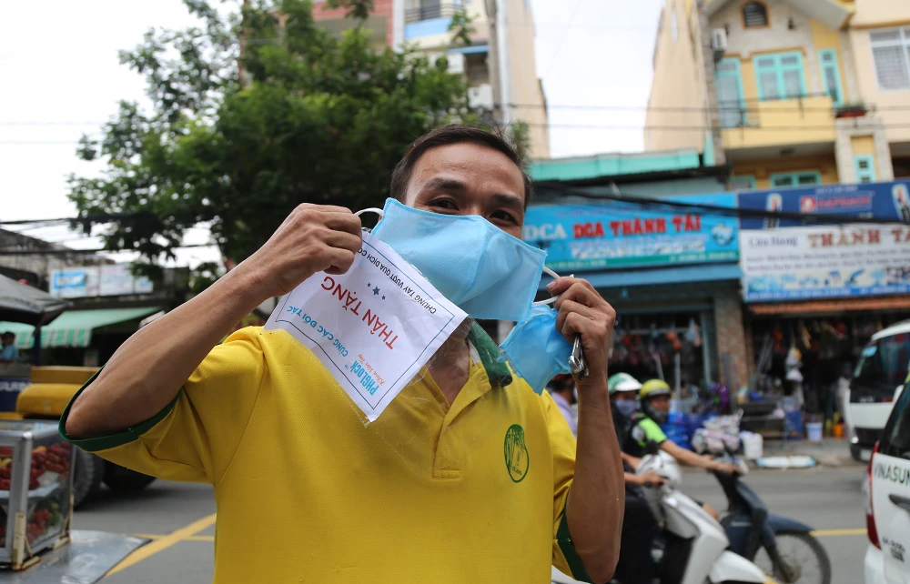 “Nhà ở gần đây nghe mọi người nói có phát khẩu trang nên tôi tới nhận. Đợt dịch lần thứ 2 này rất nguy hiểm mà giờ được phát khẩu trang miễn phí thì quá quý để ai cũng có khẩu trang đeo bảo vệ sức khỏe cho mình và mọi người” - Chị Trần Kim Ngân (quận Thủ Đức) chia sẻ.